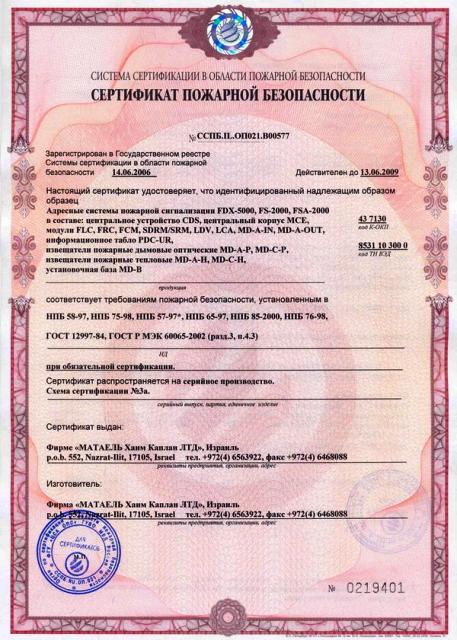 חפצים שמחייבים קבלת אישור בטיחות אש: ייצור, תעשיית הבניין, פעילות יזמית, כולל מוצרים המיובאים לרוסיה (חומרים, מבני בניין, אמצעי ייצור ואמצעי בטיחות אש, מתקנים ותהליכים טכנולוגיים, אמצעי תחבורה ואמצעים אלקטרוניים, מוצרים אלקטרו-מכניים, כולל חלקיהם ומערכות), שירותים בתחום בטיחות אש (מניעת שריפות במתקנים נבנים, תיקון וטעינת מטפי כיבוי, התקנה, כיוונון, שירות טכני של מערכות כיבוי אש וכו'). מוצרים הכפופים לקבלת אישורי חובה נכללים ברשימה, והליך מתן האישור בתחום בטיחות אש מתבסס על מסמכים נורמטיביים קיימים, דרישות בטיחות אש, וכן שיטות לעריכת ניסויים/בדיקות ובקרתם.